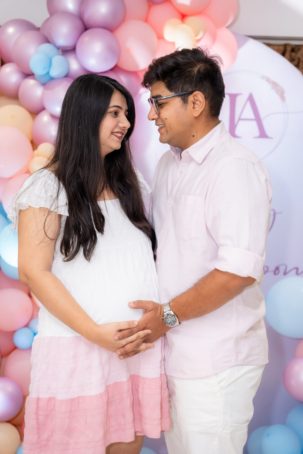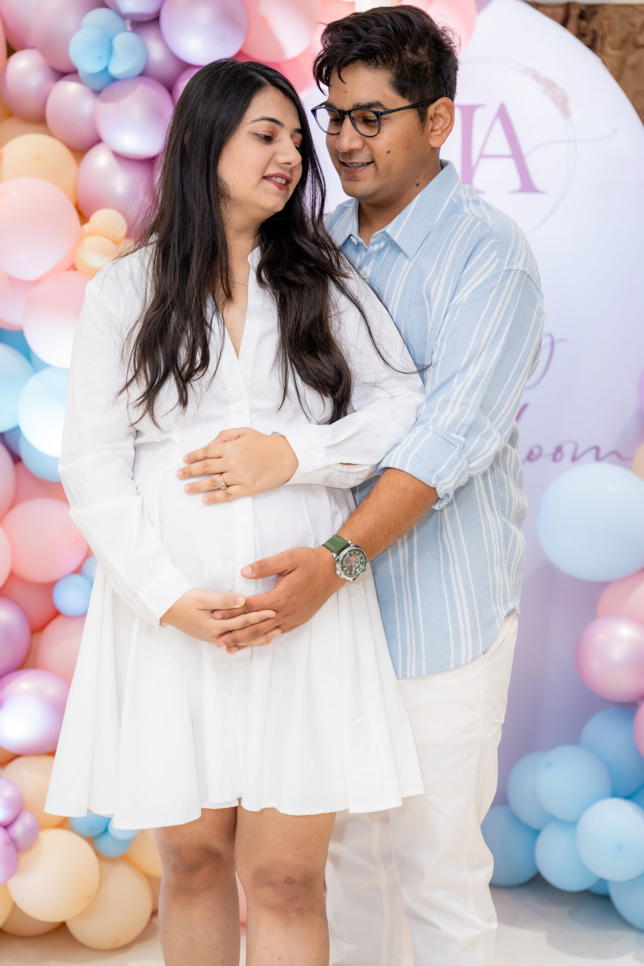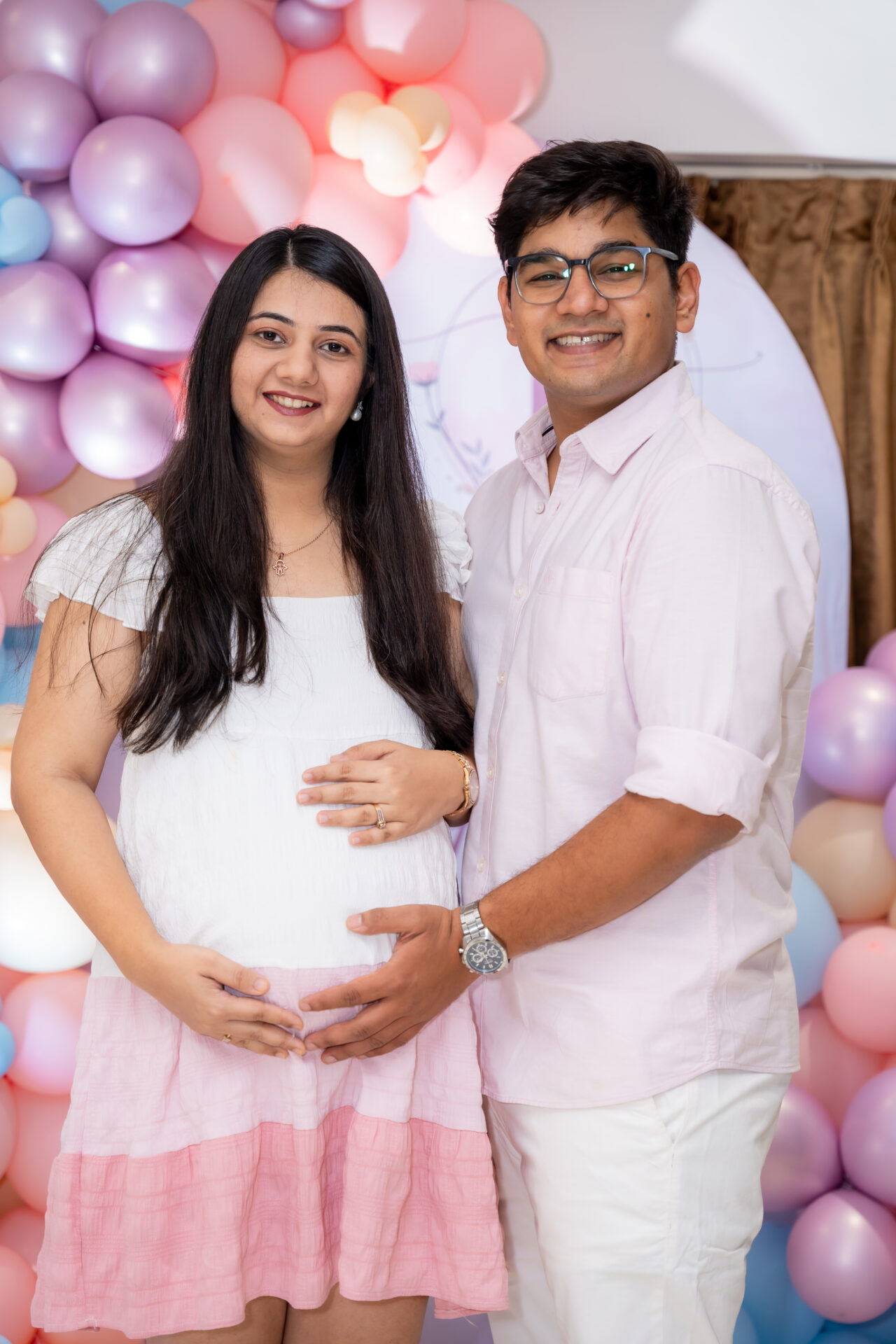 Discover Ishita & Abhishek’s intimate home baby shower captured by Deepak Kumar Photography. Trusted family photographer delivering natural, heartfelt baby shower photos with personalized attention and artistic excellence.### Ishita & Abhishek’s Baby Shower at Home