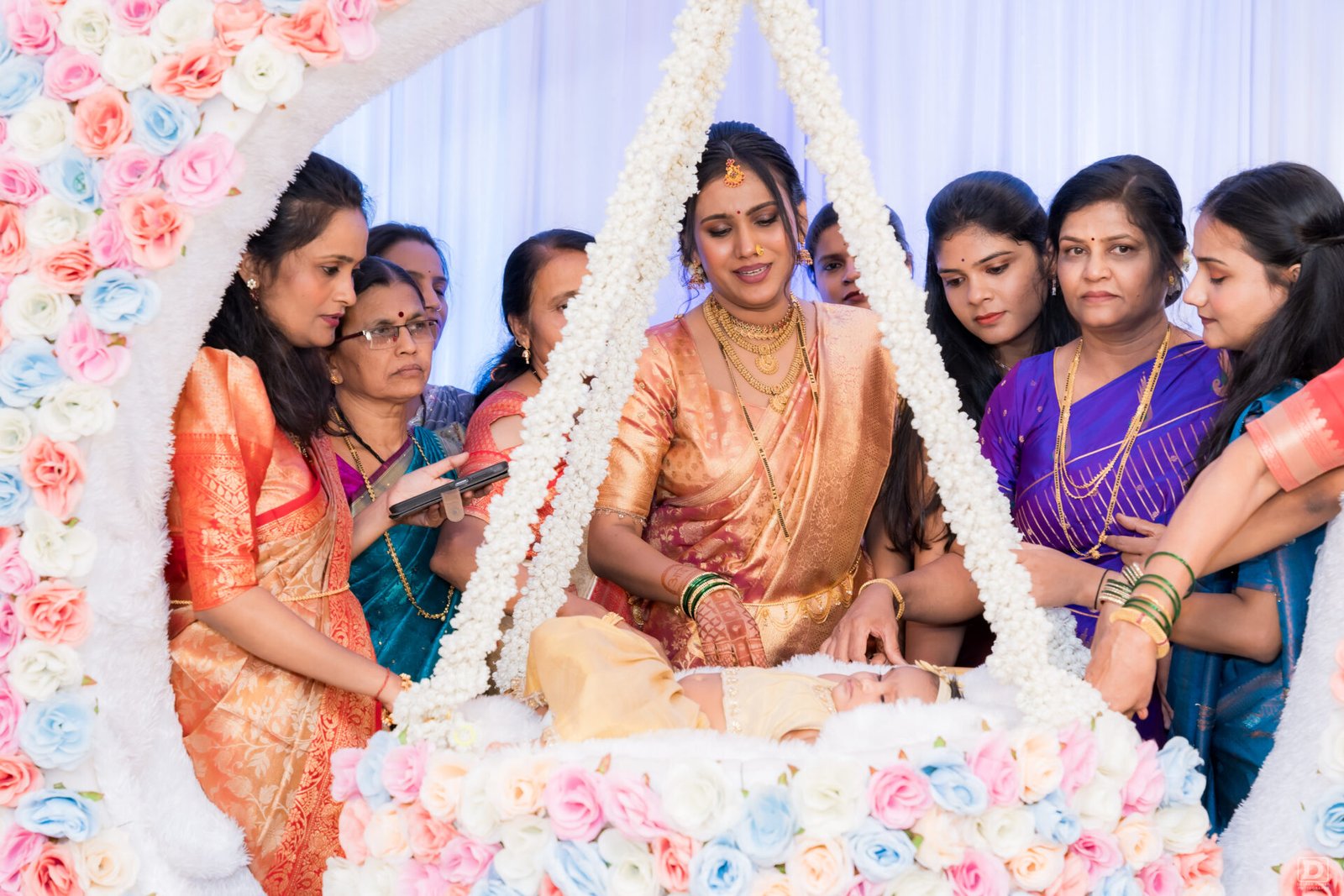 The Cradle Ceremony (Palna): The moment the baby is formally placed in the cradle by the paternal aunt is a key visual. We capture the beautifully decorated cradle (Zopala), the rituals, and the tender expressions of the family.
