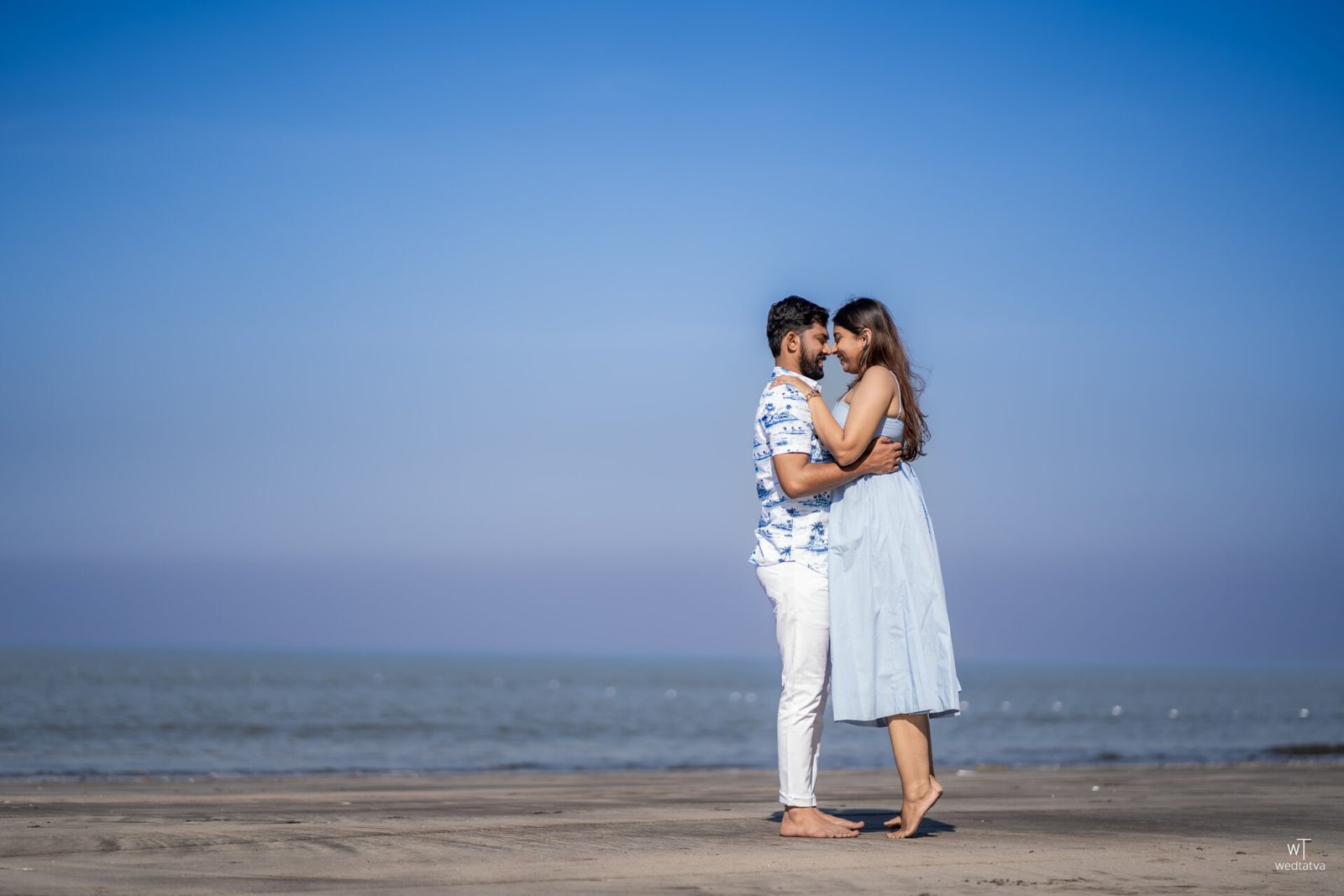 Pre-wedding shoot captured in our signature Zen-Z genre style with a modernistic approach—minimalist poses, golden hour magic, and cinematic fluidity . From serene waves to intimate embraces, every frame tells their love story. Perfect beach pre-wedding photography near Mumbai! WedTatva Films excels in beach pre-wedding shoots across Vasai, Mumbai, Alibaug, and beyond, delivering high-end videos and photos that stand out on social media.