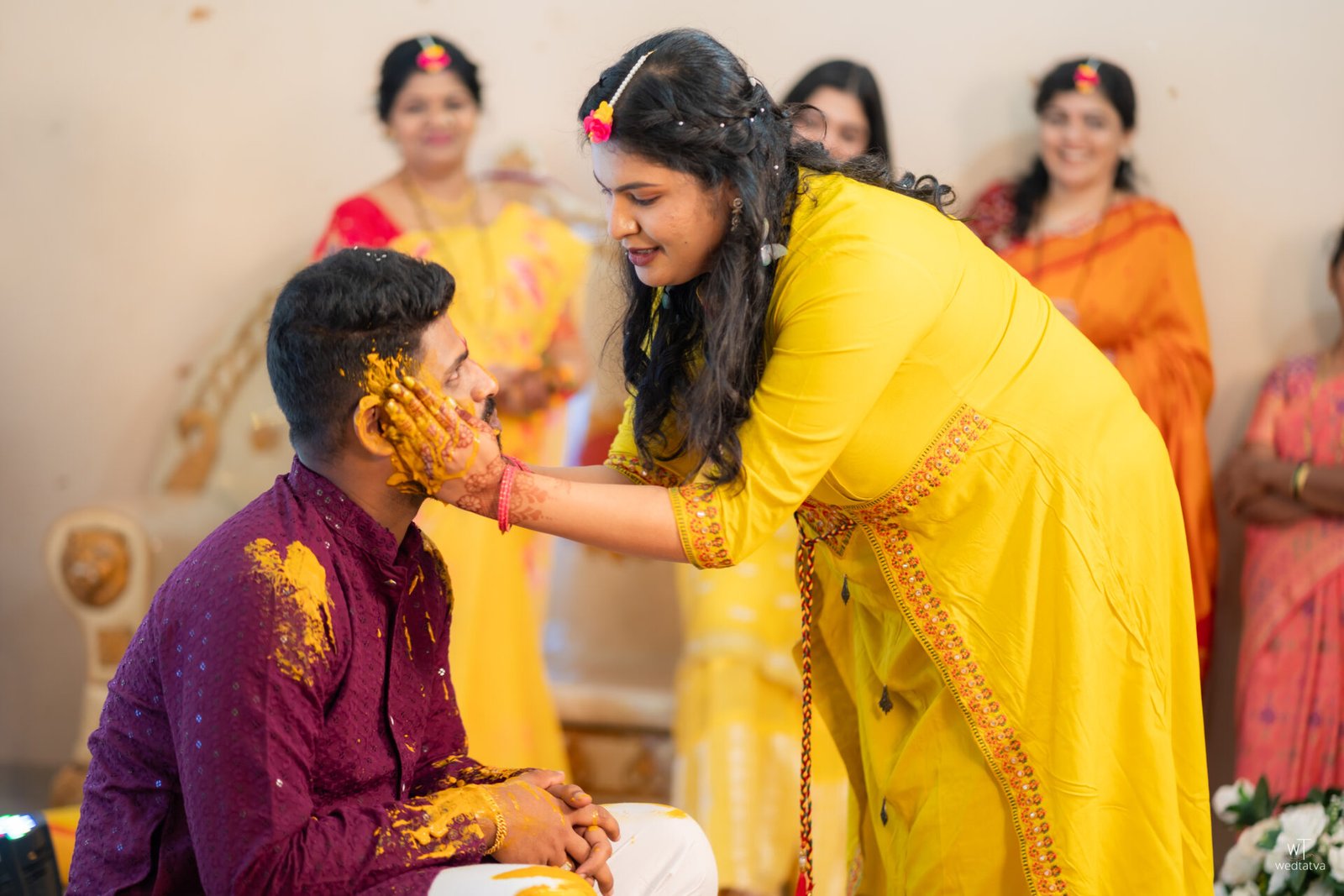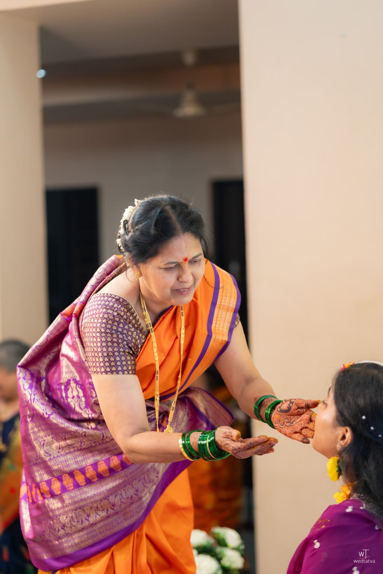 The wedding ceremony, held in the picturesque and sprawling family estate in Kudal, was a masterclass in tradition and raw emotion. The crew from Wedtatva Films capture thier first Konkan wedding , their cameras poised to catch the fleeting, honest moments that define a lifetime. They focused their lenses on the subtle glances that Suyash cast toward his bride—glances filled with a quiet, overwhelming adoration that his lips were too shy to speak. Tanaya, draped in a stunning purple and gold Nauvari saree with a traditional Nath resting perfectly on her nose, was a vision of Maharashtrian grace. Her natural, vibrant energy was beautifully softened by the sanctity of the Antarpat, the silk curtain that temporarily separated them.