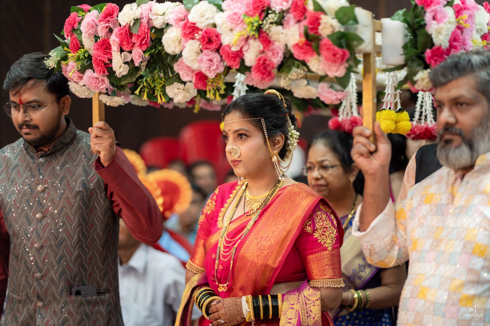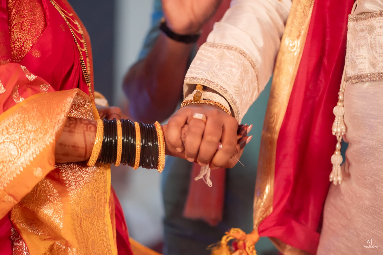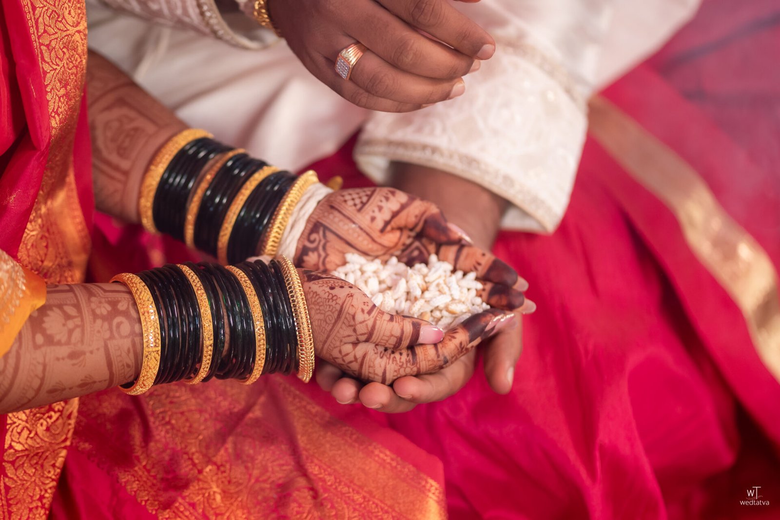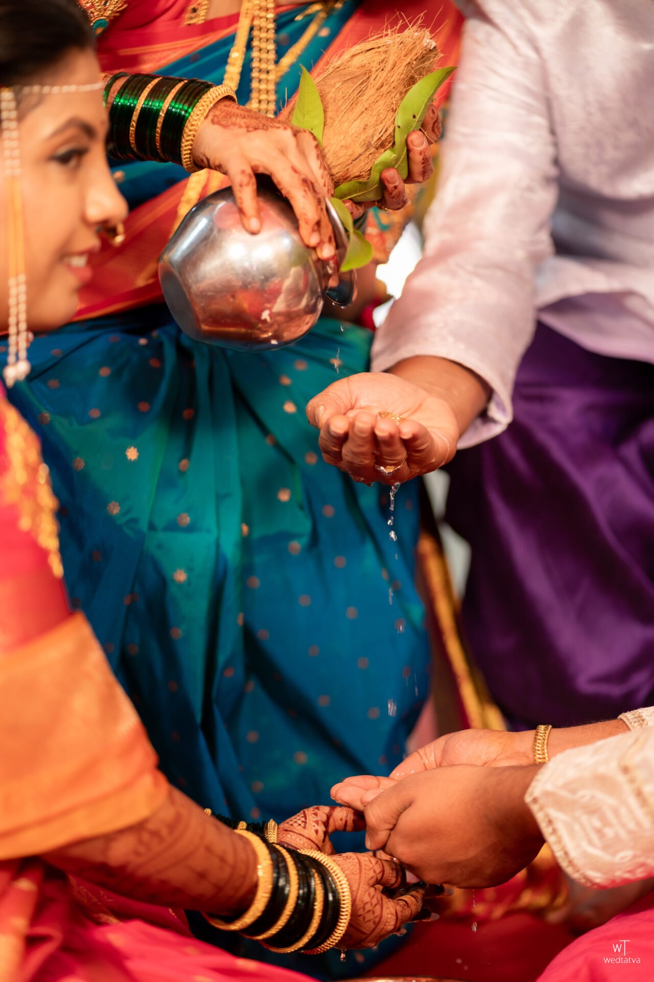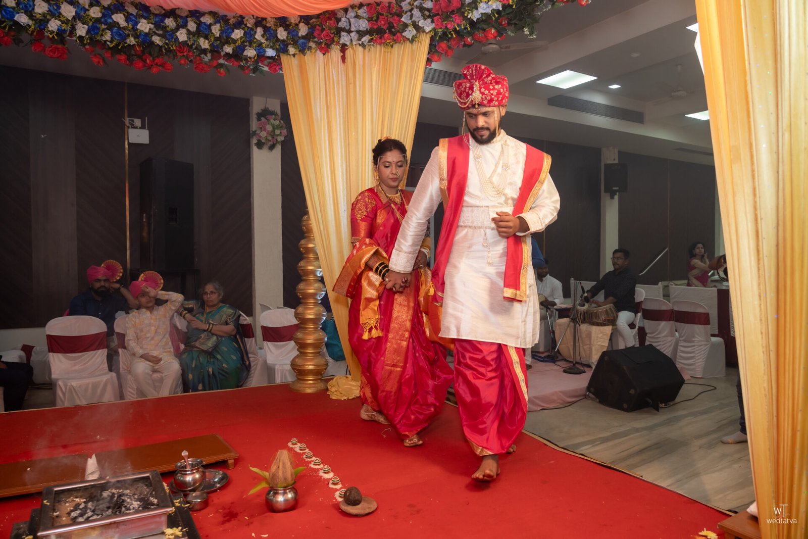 As the traditional Sanai and Chaughada echoed through the lush Konkan greenery, the rituals unfolded with a timeless solemnity. There was a specific moment, captured perfectly in cinematic slow motion by the Wedtatva team, where Suyash had to hold Tanaya’s hand for the first time during the Saptapadi. His hand trembled slightly with a shy hesitation, but Tanaya’s grip was firm, warm, and reassuring. In that single touch, a story was told: he would be her peace, her quiet sanctuary, and she would be his strength, his vibrant song.